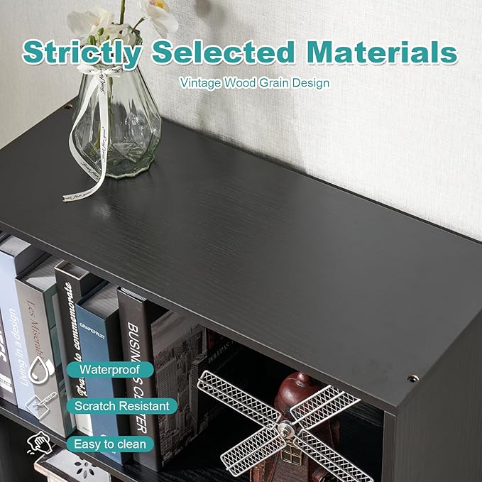 6-Tier Book Shelf, Floor Standing Open Bookcase, Wooden Display Storage Shelves with Anti-Tipping Device, 71" Tall Bookshelf for Bedroom, Living Room and Office, Black