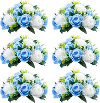 NUPTIO Pcs of 6 Fake Flower Ball Arrangement Bouquet,15 Heads Plastic Roses with Base, Suitable for Our Store's Wedding Centerpiece Flower Rack for Parties Valentine's Day Home Décor (Blue & White)