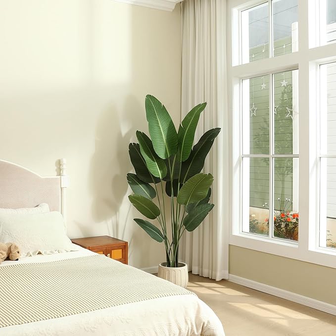 Artificial Bird of Paradise Plants 6 Ft Fake Tropical Palm Tree with 13 Trunks in Pot and Woven Seagrass Belly Basket Perfect Faux Plant for Home Indoor Outdoor Office Modern Decor Green 1Pc…