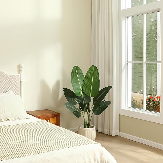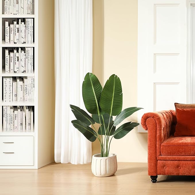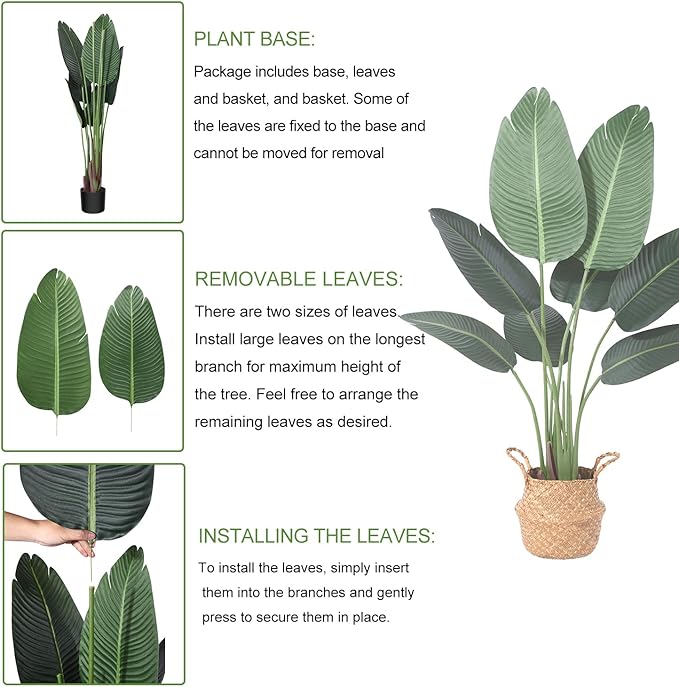 Artificial Plants 4FT Artificial Bird of Paradise Plant in Pot, Tall Fake Tree with Woven Basket, Realistic Faux Palm Tree 8 Trunks Silk Plants for Modern Home Décor Indoor Outdoor Office