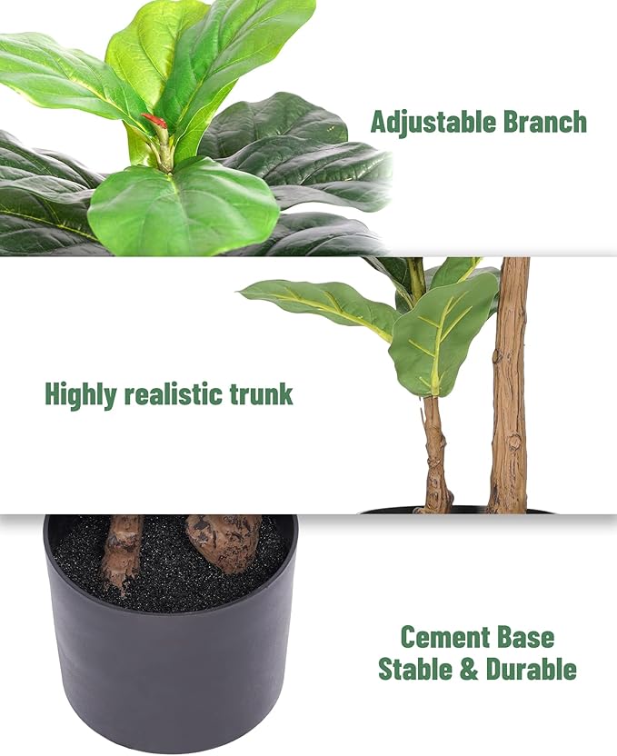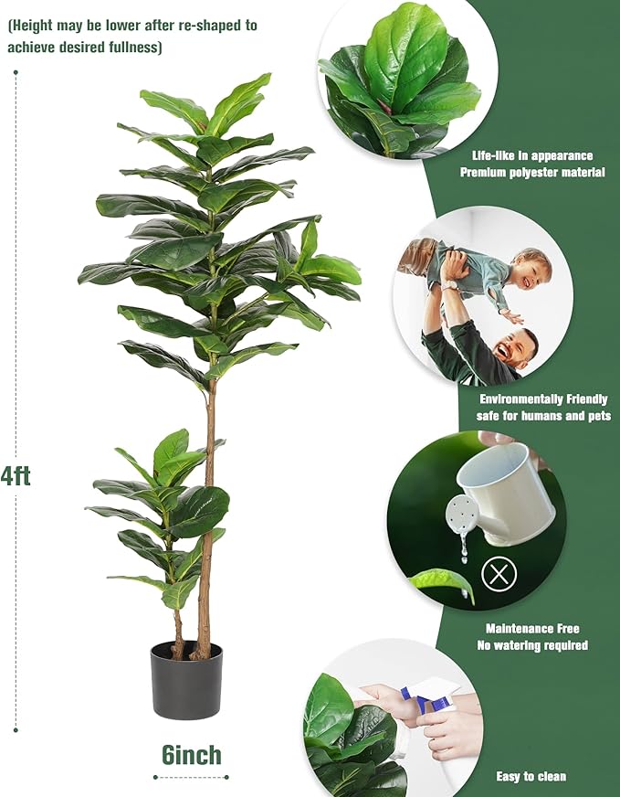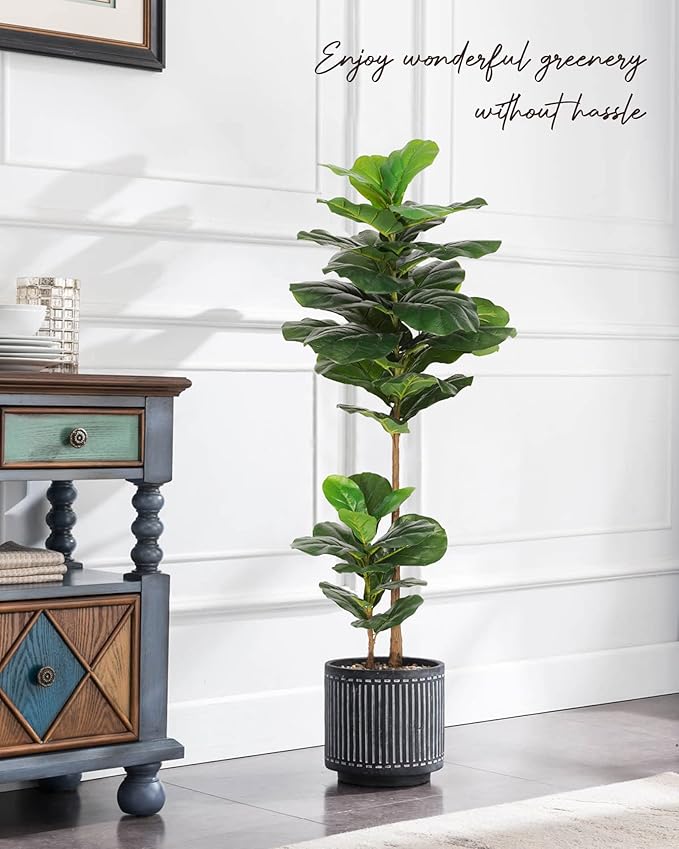 Fiddle Leaf Fig Tree Artificial Plant 4FT Tall Faux Plants Indoor Fake Ficus Lyrata Plant in Pot Artificial Fig Trees for Home Office Store Room Decor Indoor Outdoor Housewarming Gift