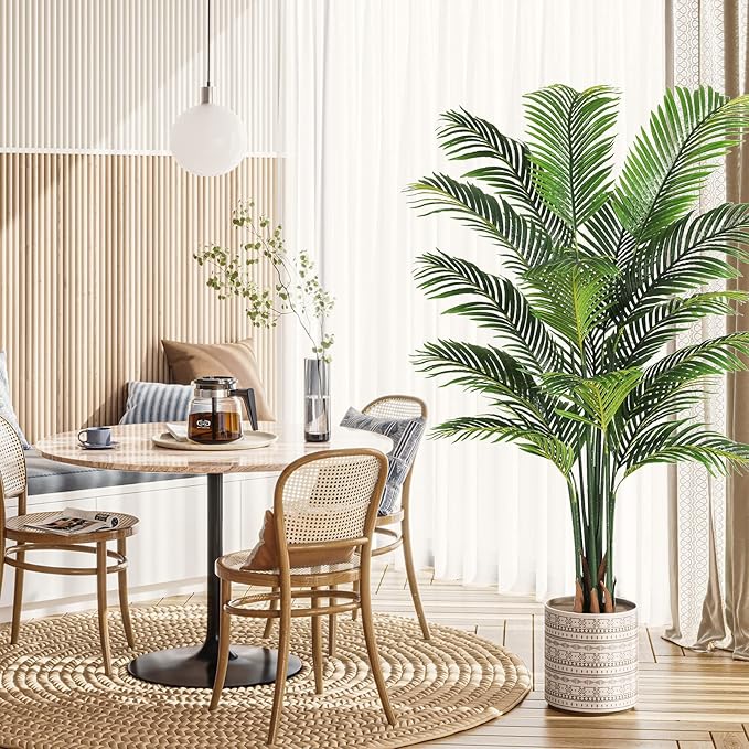 VIAGDO Artificial Fake Palm Tree 6ft Tall with 16 Detachable Trunks Faux Tropical Palm Silk Plant Feaux Dypsis Lutescens Plants in Pot for Home Office Living Room Floor Decor Indoor