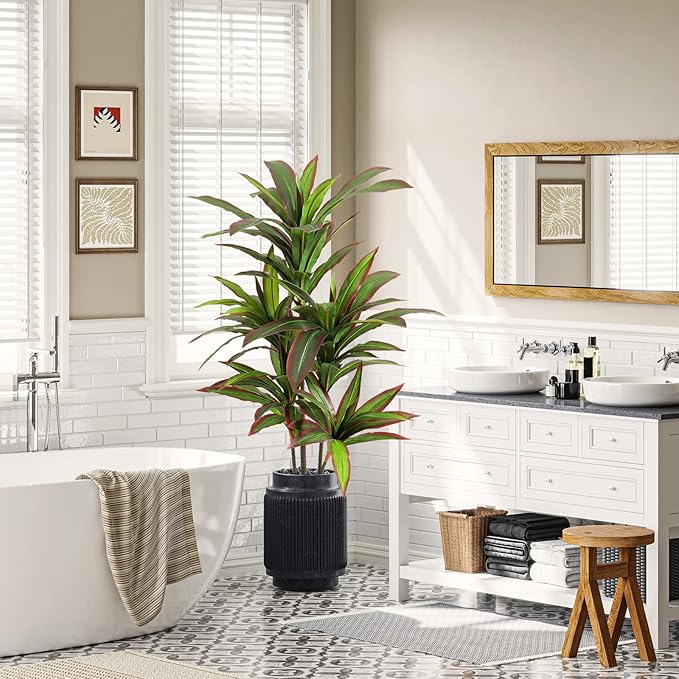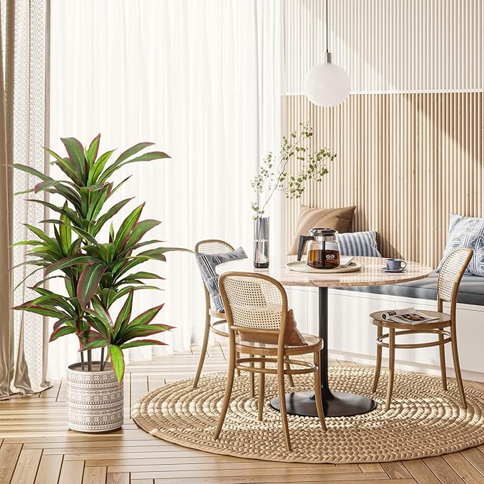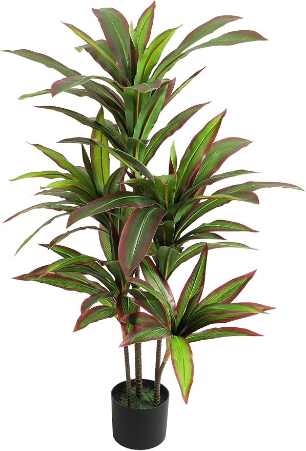 VIAGDO Dracaena Silk Plant Artificial 4ft Faux House Plants with Red Leaf Margin Fake Yucca Palm Trees in Pot Realistic Dragon Tree for Living Room Home Office Decor Indoor Outdoor