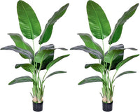 2Packs 5FT Artificial Bird of Paradise Plant,Faux Palm Tree Potted Plant with Real Touch Leaves,Fake Trees for Home Living Room Office Indoor Outdoor Decor(5 FT-2Packs)