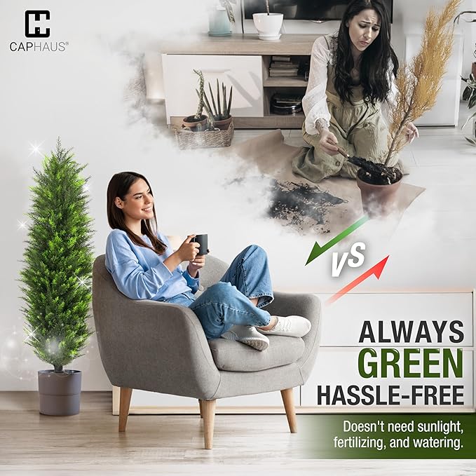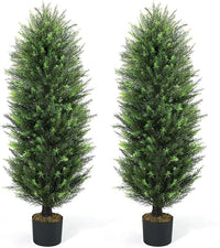 CAPHAUS 4 FT Artificial Cedar Tree Set of 2-48 Inch UV Resistant Faux Topiary Trees with Dried Moss for Indoor/Outdoor | Porch, Patio & Garden Decor