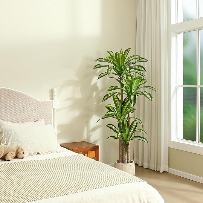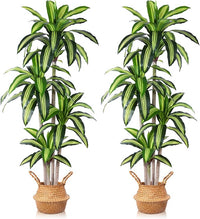 Artificial Plants, 6 Ft Dracaena Tree Faux Plants Indoor Outdoor Decor Fake Tree with Woven Seagrass Basket Plants for Home Decor Office Living Room Porch Patio Housewarming 2 Pack