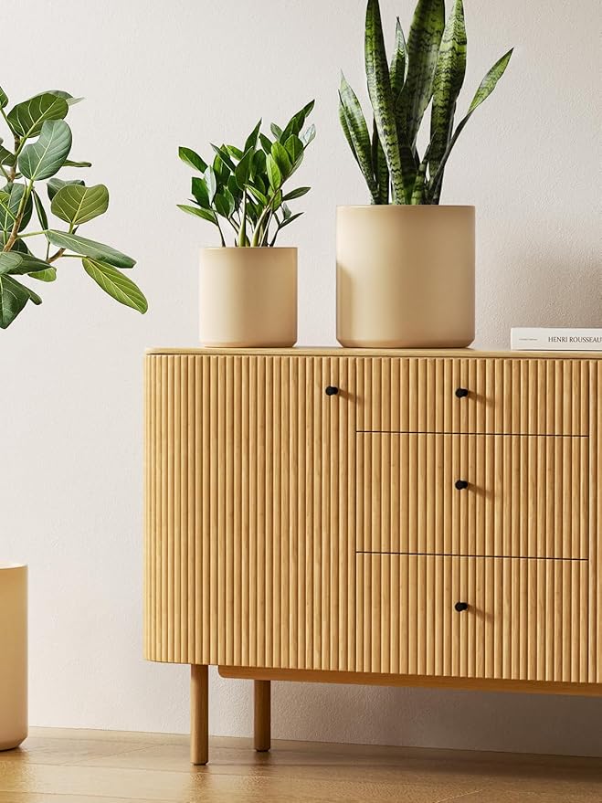 LE TAUCI Ceramic Plant Pots Indoor, 10+8+6 Inch Planters for Indoor Plants, Mid-Century Modern Flower Pots with Drainage Hole and Plug, Cylinder Round Planters, Set of 3, Cloud Cream