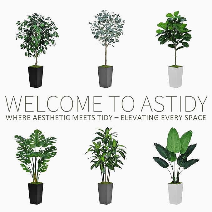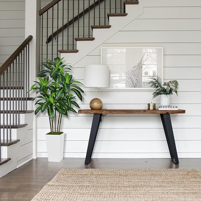 Artificial Dracaena Tree 5FT - Faux Tree with White Tall Planter - Fake Tropical Yucca Floor Plant in Pot - Artificial Silk Tree for Home Office Living Room Decor Indoor