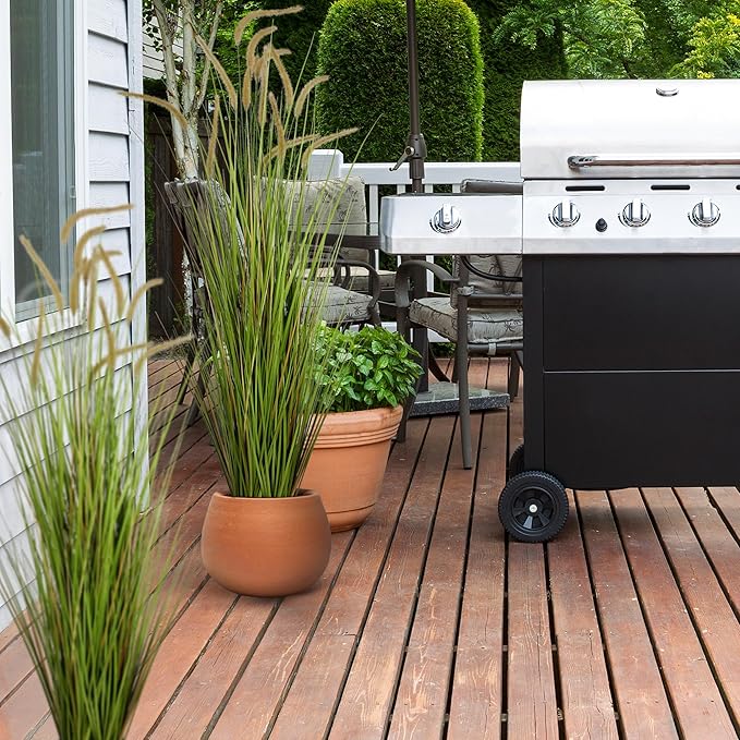 KOL Artificial 5ft Horsetail Reed Grass – 59in Tall Faux Grass Plant in Pot, Indoor Outdoor Artificial Greenery for Home, Office, Wedding & Party Decor