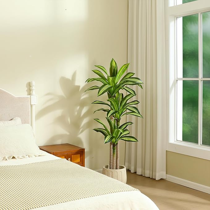 Artificial Plants, 5 Ft Dracaena Tree Faux Plants Indoor Outdoor Decor Fake Tree with Woven Seagrass Basket Plants for Home Decor Office Living Room Porch Patio Housewarming