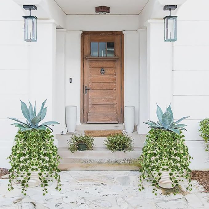 Hollyone 2pcs Artificial Hanging Plants 35.4" Fake Ivy Vine Faux Ivy Leaves Fire and UV Resistant Hanging Plant Wall Greenery for House Room Patio Indoor Outdoor Home Shelf Office Wedding Decor