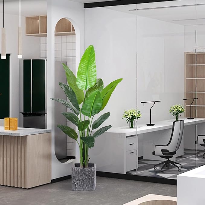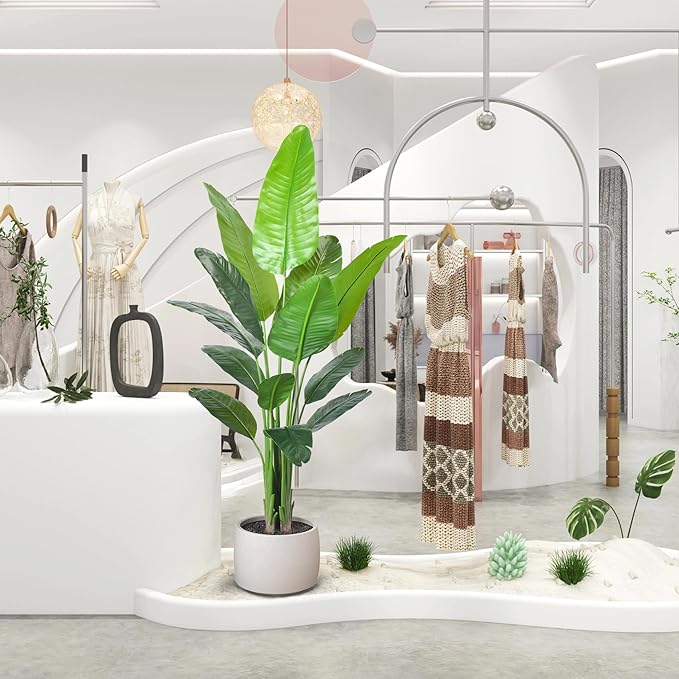 6FT Artificial Bird of Paradise Plant,Faux Palm Tree Potted Plant with Real Touch Leaves,Fake Trees for Home Living Room Office Indoor Outdoor Decor(6FT-1Pack)