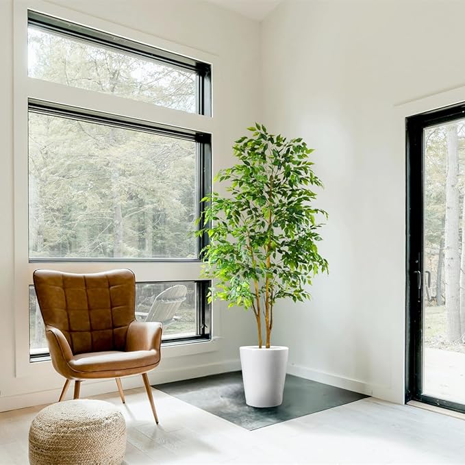 Artificial Ficus Tree, 7ft Silk Fake Ficus Leaves Plant with Basket, Indoor Outdoor Faux Green Tree for Home Garden Office House Livingroom Décor