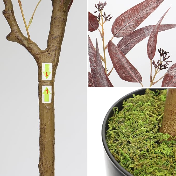Briful 5ft Artificial Eucalyptus Tree in Black Pot, Realistic Silk Potted Floor Plant Eucalyptus Plant for Home Decor Indoor Outdoor Patio Office, Burgundy Leaf