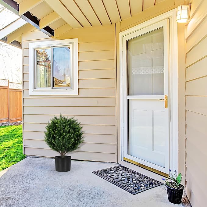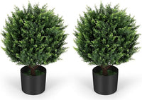 21''T Artificial Cedar Topiary Ball Tree 2 Pack, Outdoors Artificial Shrubs Fake Plants Uv Rated Potted Plants for Outdoor, Indoor, Front Door, Office Decor.