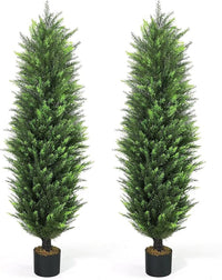 CAPHAUS 5 FT Artificial Cedar Tree Set of 2-60 Inch UV Resistant Faux Topiary Trees with Dried Moss for Indoor/Outdoor | Porch, Patio & Garden Decor