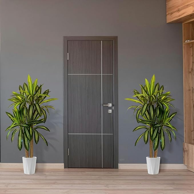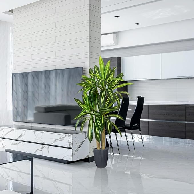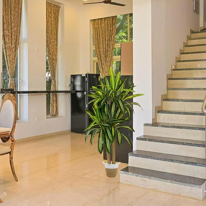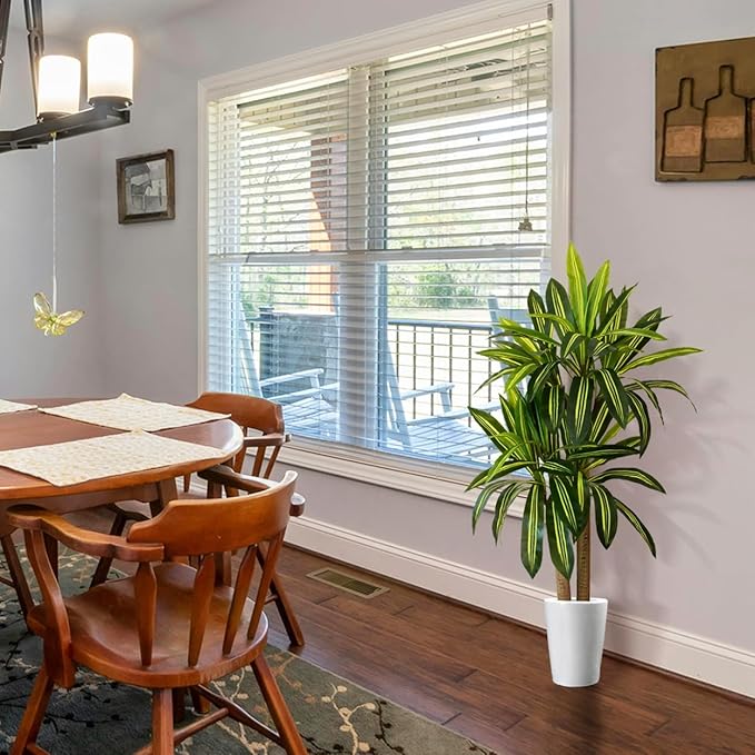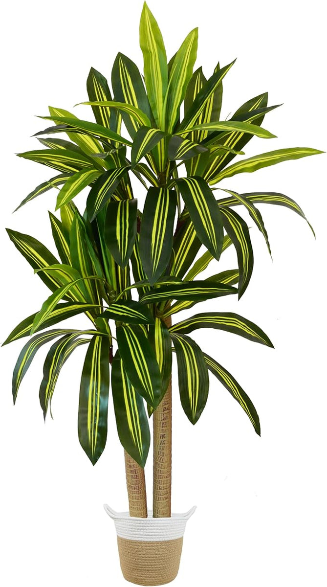 Artificial Dracaena Tree, 5ft Tall Fake Dracaena Plant with Basket, Indoor Outdoor Faux Topiary Yucca Trees for Office Home Living Room Porch Patio Décor