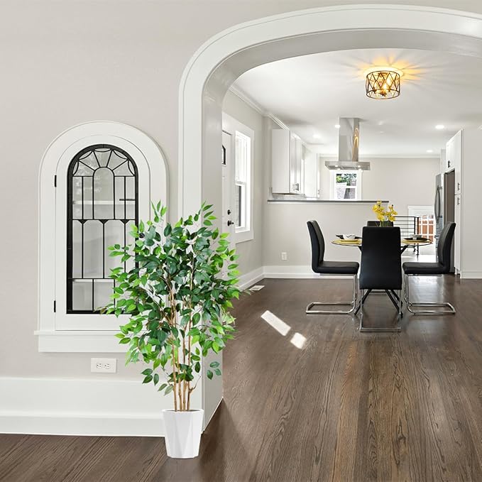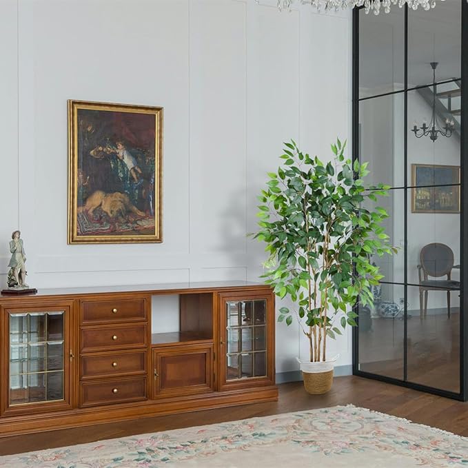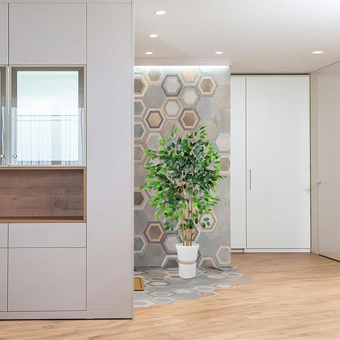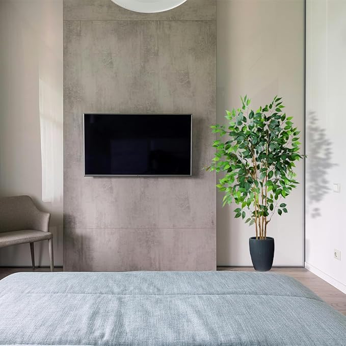 Artificial Ficus Tree, 5ft Tall Silk Fake Ficus Leaves Plant with Basket, Indoor Outdoor Faux Greenery Tree for Home Garden Office House Livingroom Décor