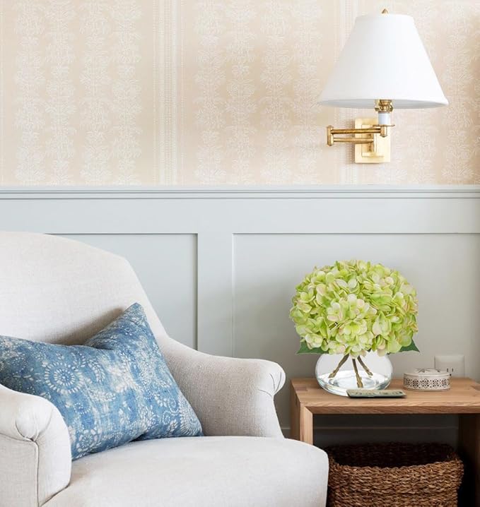 Hollyone Hydrangea Artificial Flowers with Glass Vase Green Silk Faux Flowers Arrangements in Vase with Faux Water Fake Floral Bulk Bouquet for Home Decor Table Centerpiece Decorations