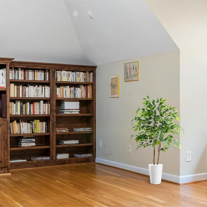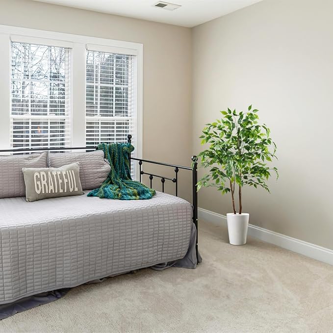 Artificial Ficus Tree, 4ft Tall Fake Ficus Tree with Basket, Faux Plant for Indoor Outdoor Home Livingroom Office Garden Porch Décor