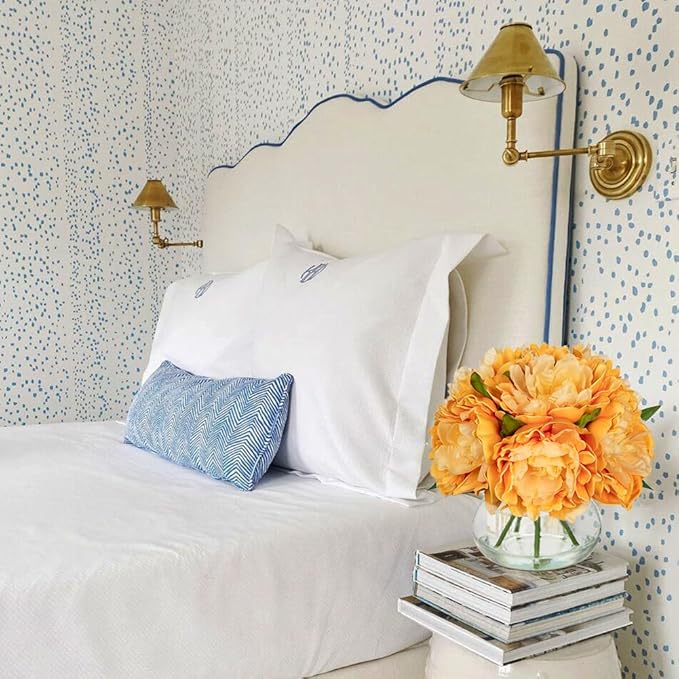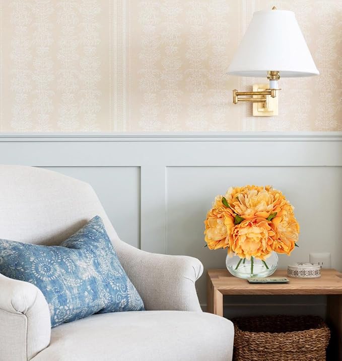 Hollyone Orange Peonies Fall Flowers Artificial for Decoration in Vase Faux Flowers Autumn Peony Silk Flower Arrangements with Glass Vase with Fake Water Table Centerpiece Fall Decorations for Home