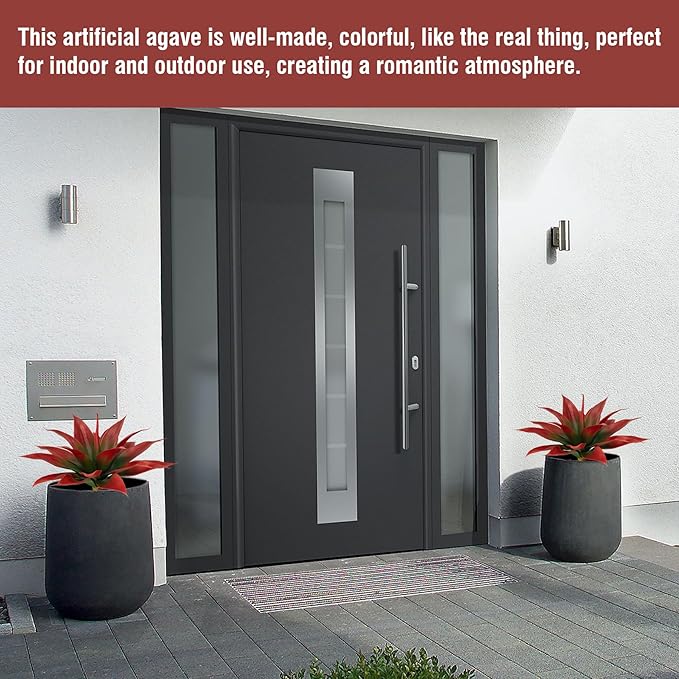 Artificial Agave Plants,Large UV Resistant Fake Agave Planters for Indoor and Outdoor Decorating Tropical Plant Succulents Greenery Indoor Decor (2Pack,18" Red)