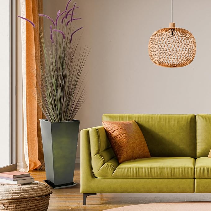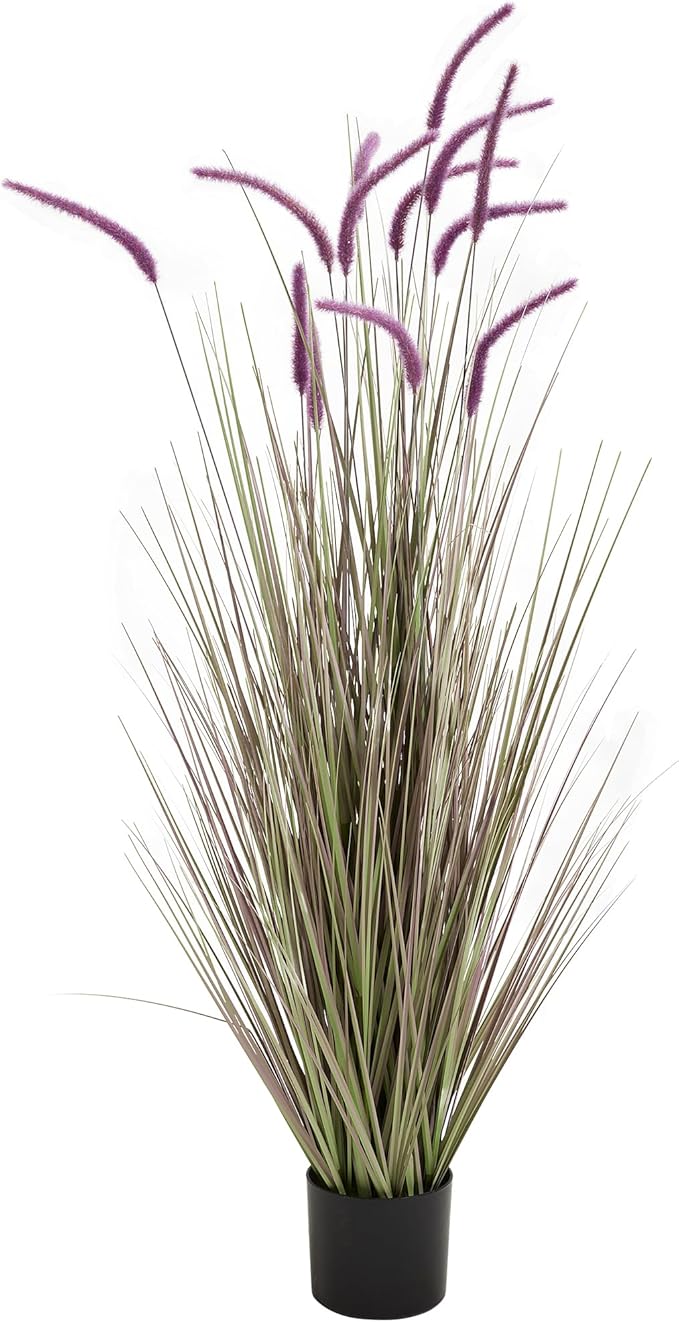 KOL Artificial 5ft Purple Horsetail Reed Grass, 59in Tall Artificial Indoor Outdoor Fake Grass Plant, Home Office Decorative Artificial Plants & Flowers in Pot Faux Plant Greenery, Wedding Decor
