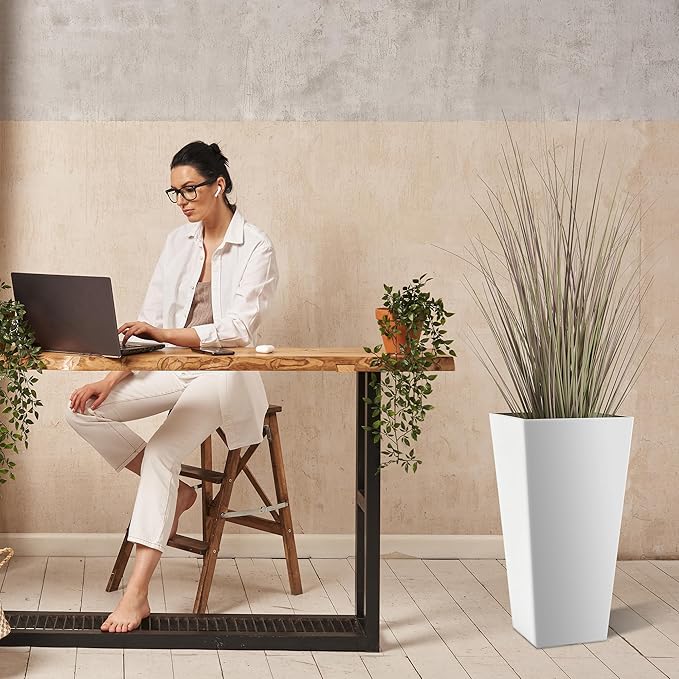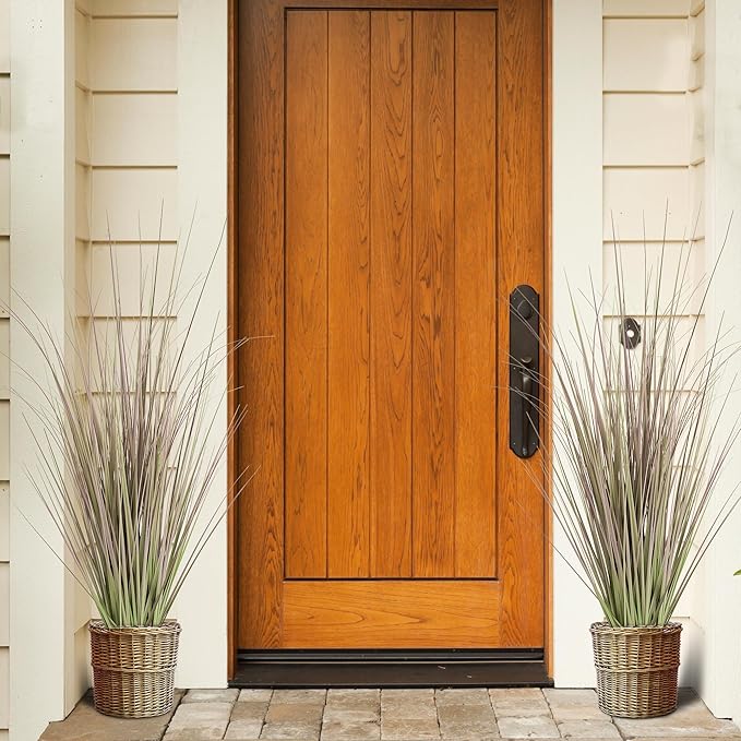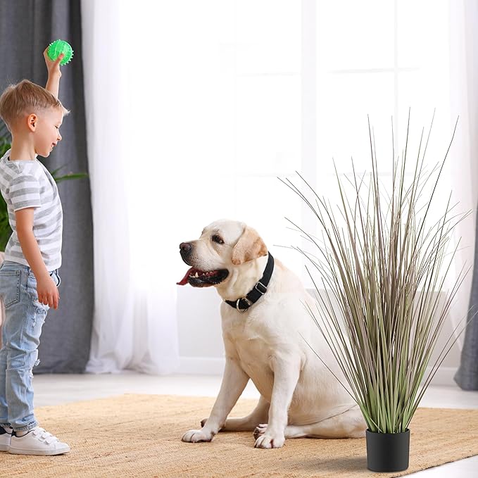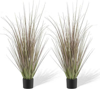 KOL 4FT 2-Pack Artificial Onion Grasses, 47.2’’ Indoor Outdoor Fake Grass Plant, Home Office Wedding Decoration, Faux Greenery Plants & Flowers in Pot, UV Resistant, Housewarming Gift, Purple