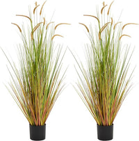 KOL Artificial 5ft 2-Pack Horsetail Reed Grass, 59in Tall Artificial Indoor Outdoor Fake Grass Plant, Home Office Décor Artificial Plants in Pot Faux Plant Greenery, Wedding Decor - Yellow