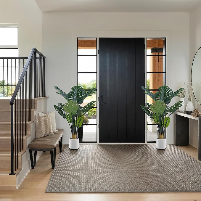 Artificial Monstera Deliciosa Plants, 4FT Faux Monstera Plant with White Planter, Swiss Cheese Plant with Green Leaves Stems, Fake Tropical Silk Tree for Indoor Office House Living Room Home Decor