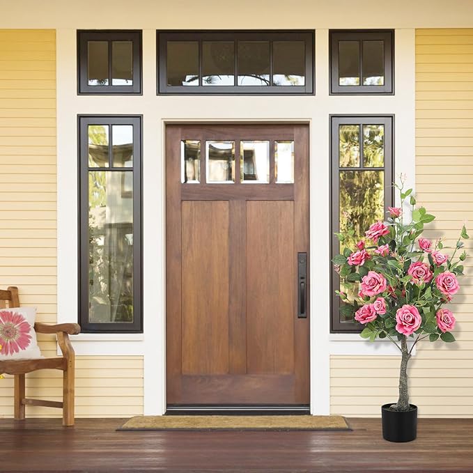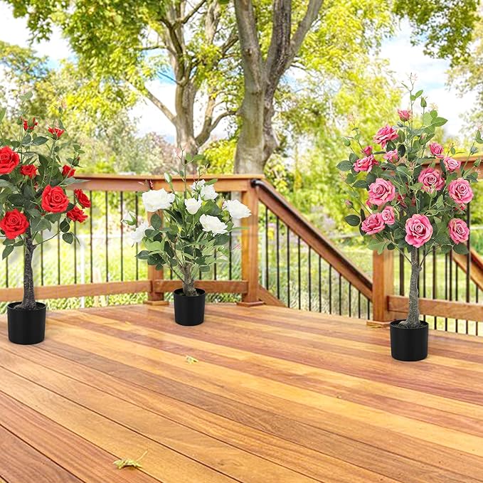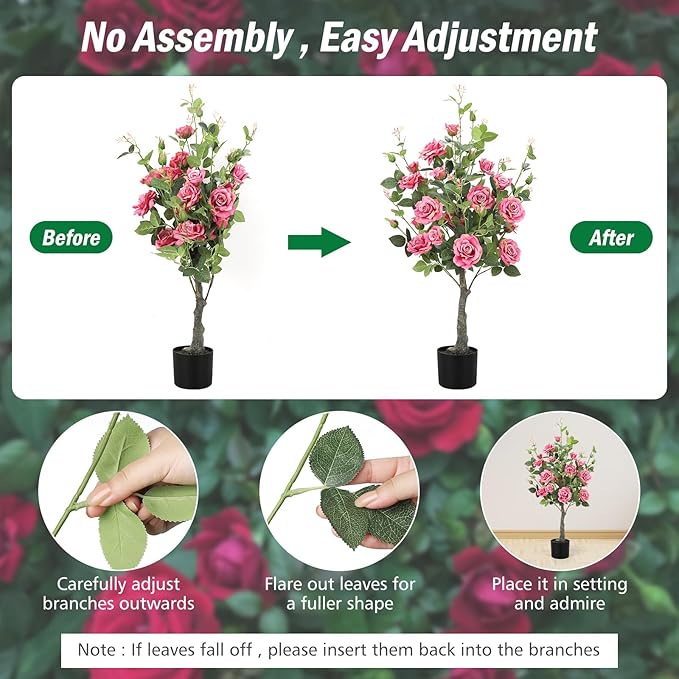 Romantic season 2Pack Artificial Rose Flower Trees, 42Inch Pink Faux Rose Tree with Green Leaves for Living Room Office Home Outdoor Indoor Decor