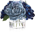 WELL KNOWN Rose Artificial Flowers in Vase with Faux Water, Silk Rose Table Centerpieces for Home Coffee Table Decor, Fake Roses Flower Arrangements for Office Hotel Lavatory Decor (Blue)