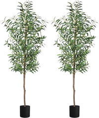 Fake Olive Tree, 5FT 2Pack Tall Plants Olive Trees 60in Silk Plant with Trunk and Realistic 536 Leaves and 20 Fruits for Modern Office Home Decor Indoor