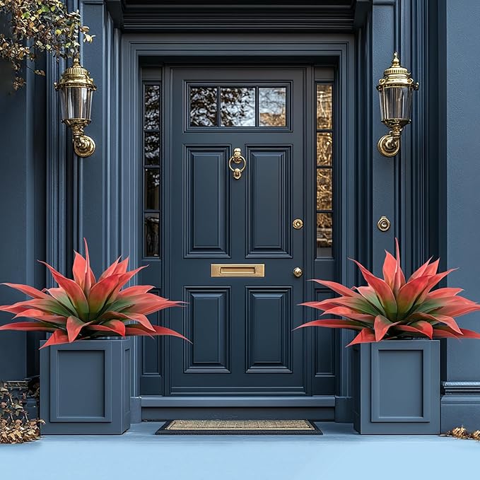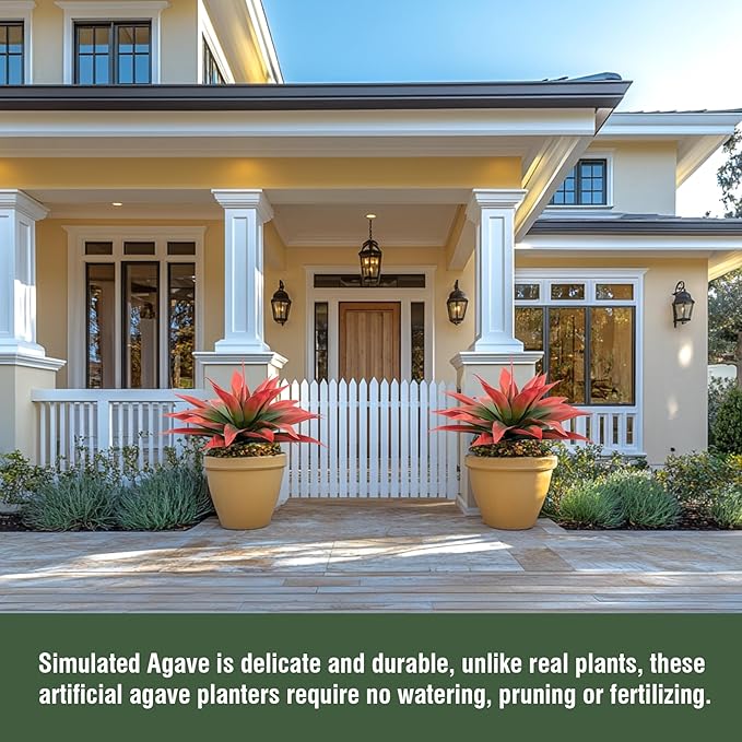Artificial Agave Plants,Large UV Resistant Fake Agave Planters for Indoor and Outdoor Decorating Artificial Plants for Outdoors Fake Plants 2Pack, 28" Red