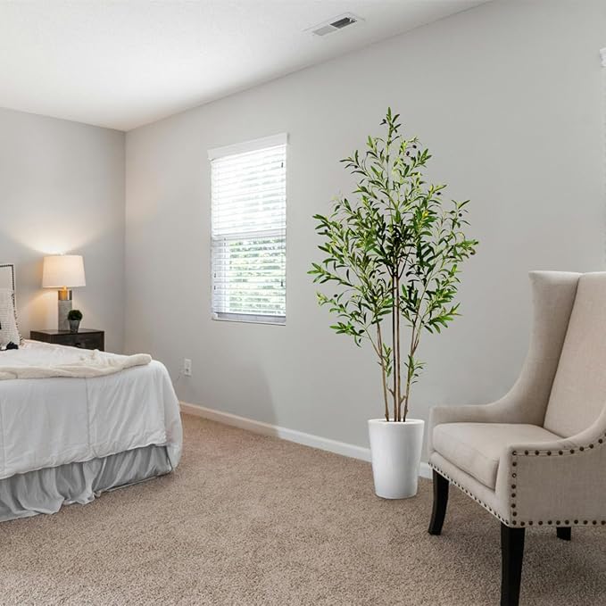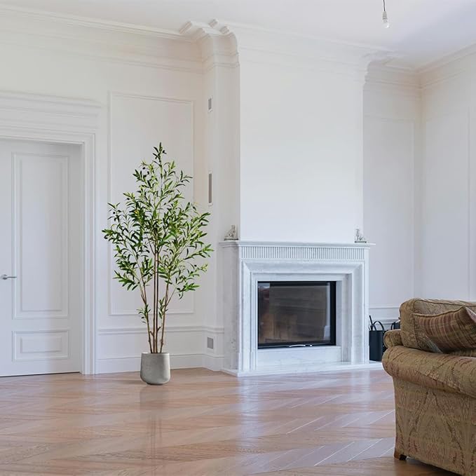 6ft (71”) Artificial Olive Tree, Tall Fake Olive Plant with Basket, Faux Olive Silk Tree for Mordern Indoor Home Livingroom Office Floor Corner Décor