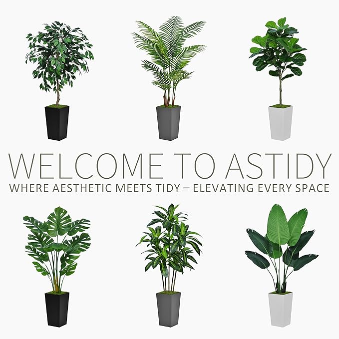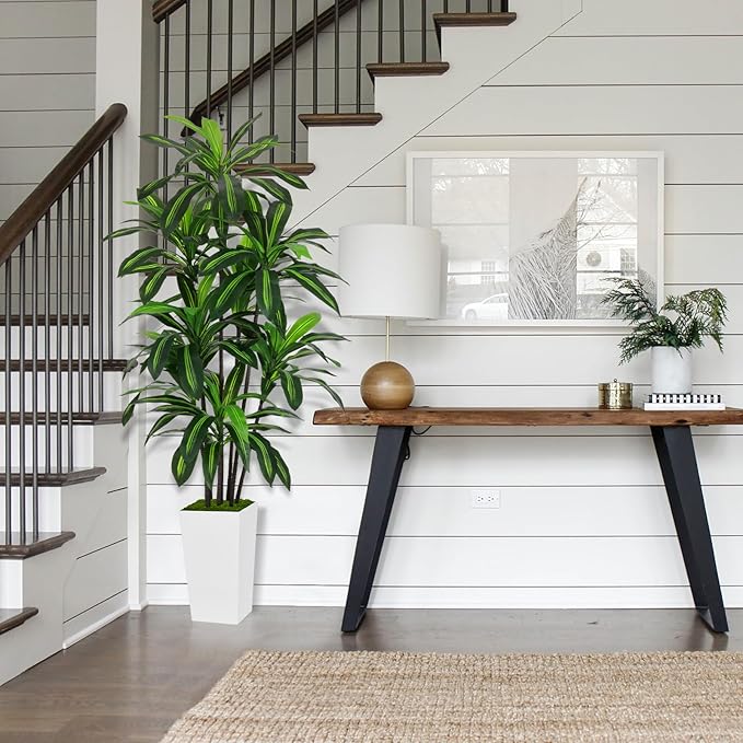 Artificial Dracaena Plant 6FT - Fake Tree with White Tall Planter - Faux Yucca Tall Fake Floor Plant in Pot - Artificial Trees for Home Office Living Room Decor Indoor