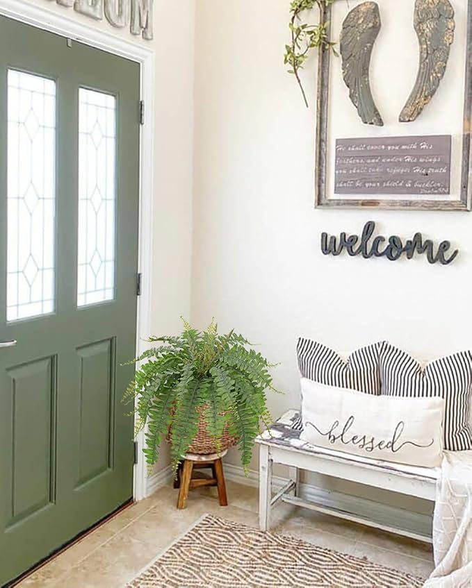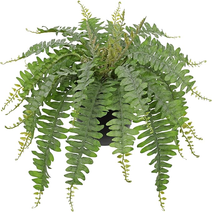 Hollyone Artificial Fern Plants in Pot 18.8" Small Artificial Boston Fern 24 Leaves for Outdoors & Indoor Faux Potted Plant Fake Ferns Bush Plant Patio Garden Farmhouse Porch Home Decor Dusty Green