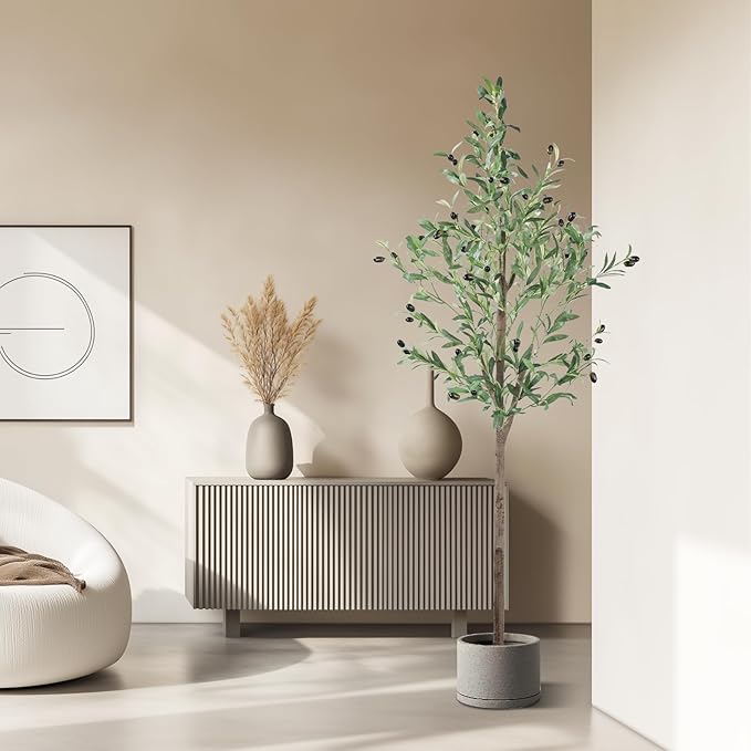 Artificial Olive Tree 5FT Tall Faux Silk Plant 60inch Fake Olive Tree with Trunk and Lifelike Fruits for Home Office Decor Indoor 1pack
