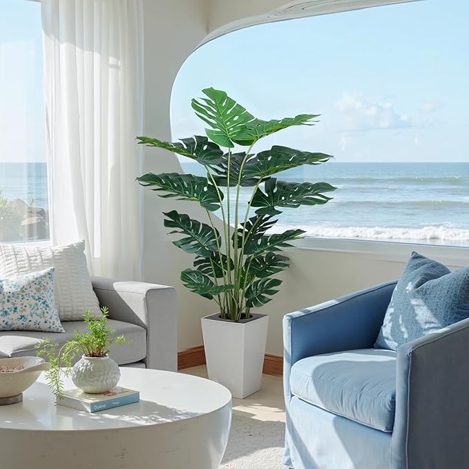 Artificial Monstera Plant 5ft, Realistic Fake Plants with Silk Leaves & Texture Trunk, Artificial Plants for Home Office Decor Indoor Outdoor Housewarming Gift