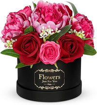 Hollyone Red Artificial Peonies Roses in Vase Round Gift Boxes with Fake Flowers Arrangements Faux Flowers Floral in Box Vase for Her Mothers' Day Valentine's Day Christmas Birthday Graduation Gift