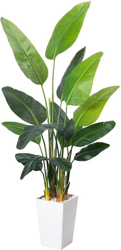 Bird of Paradise Plant Artificial 7ft,Faux Plants Indoor with White Planter,Fake Tree with Lifelike Leaves,The Perfect Indoor Silk Floor Plant for Home、Hallway and Office Decor
