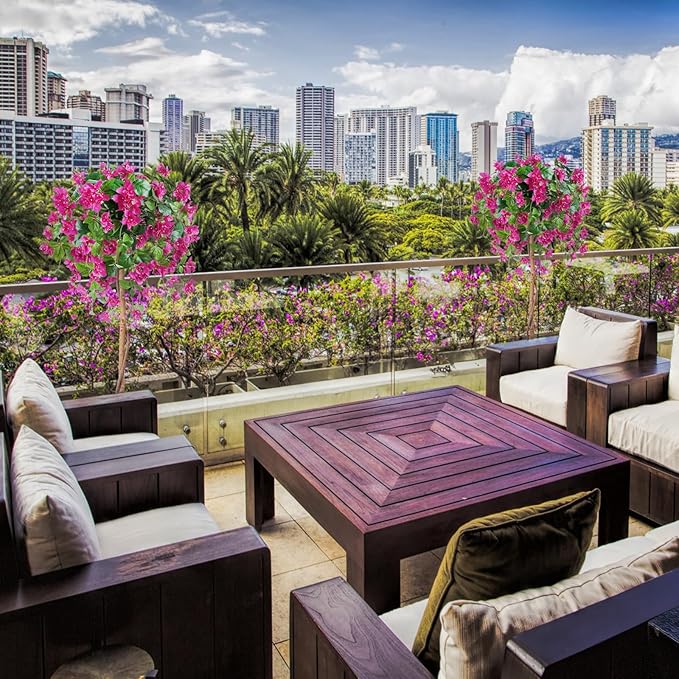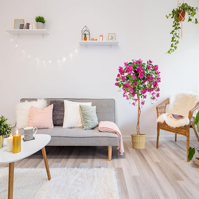 HUAESIN 2 Pack 5FT Bougainvillea Artificial Tree Tall Potted Fake Bougainvillea Trees Lifelike Faux Plants with Wood Trunk and Pink Flower for Indoor Outdoor Office Wedding Home Decor