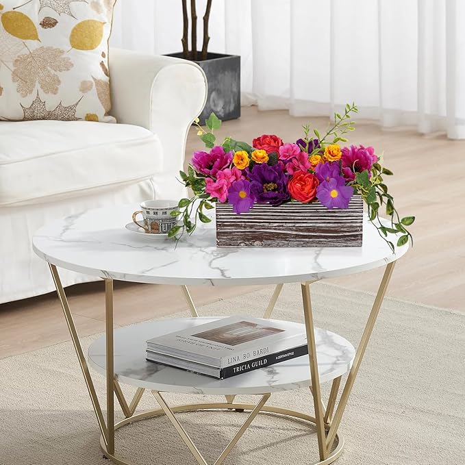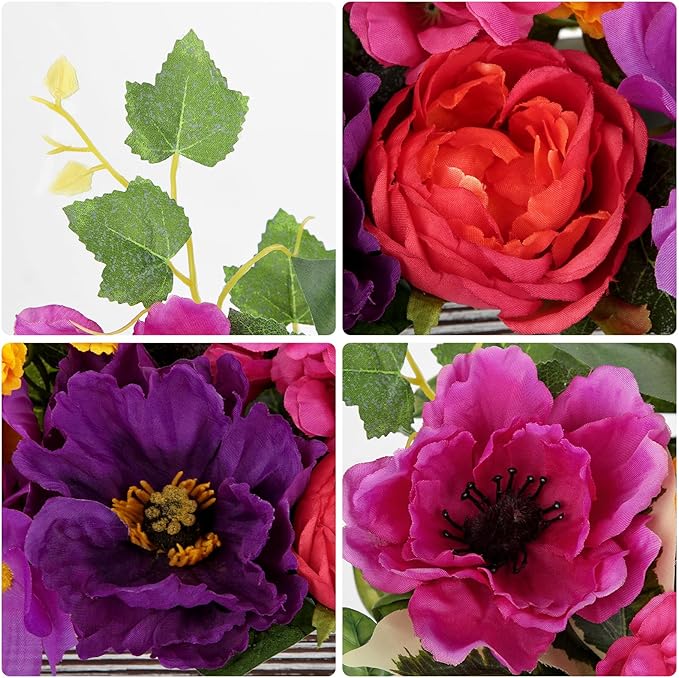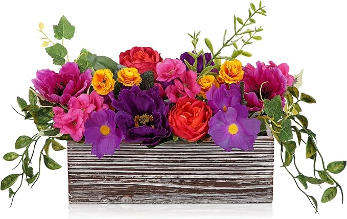 DILATATA Flower Arrangement with Wooden Vase 10" Artificial Flowers in Pot - Fake Flowers in White Rectangular Wooden Vase Potted Faux Flower Centerpieces for Table Decor Living Room - Purple