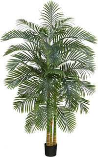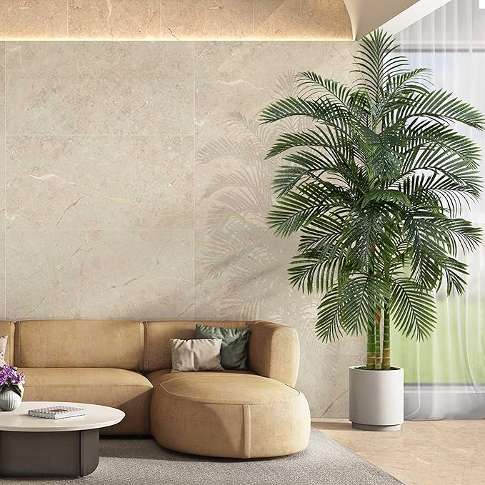 Artificial Golden Cane Palm Tree 7FT, Fake Palm Tree with Three Realistic Trunks and Lifelike Palm Leaves, Faux Palm Plant for Indoor Home Décor with Black Planter