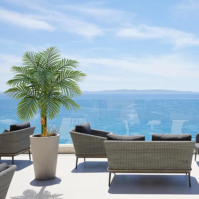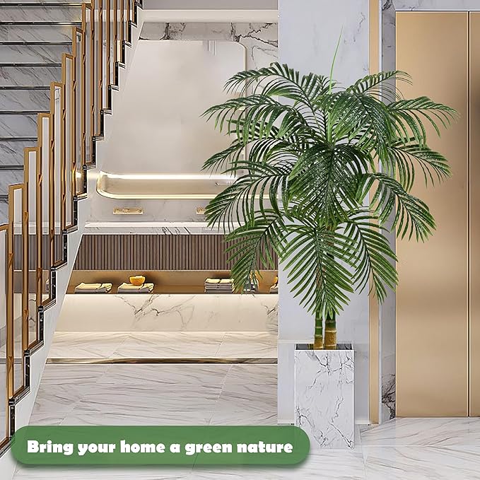 Artificial Golden Cane Palm Tree 5FT, Fake Palm Tree with Three Realistic Trunks and Lifelike Palm Leaves, Faux Palm Plant for Indoor Home Décor with Black Planter