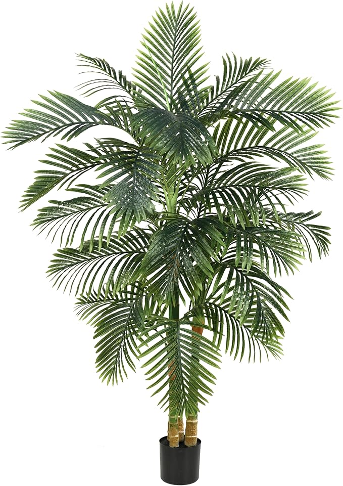 Artificial Palm Tree Indoor Plant 6FT Tall Fake Tropical Palm Tree in Pot with Real Bark Design Faux Areca Palm Tree for Home Office Living Room Bedroom Farmhouse Modern Outdoor Decor (22 leaves 6 FT)