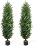 3FT Artificial Cedar Trees Set of 2, Realistic Faux Evergreen Topiary Bushes Plants, Outdoor Potted Fake Cypress Shrubs for Front Porch Garden Home Living Room Decor