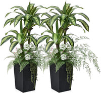 Artificial Dracaena Tree 4ft Artificial Plants Indoor UV Resistant, Dracaena Fake Plants with Multiple Plants in Black Tall Planter for Indoor Outdoor Decoration (2 Pack)