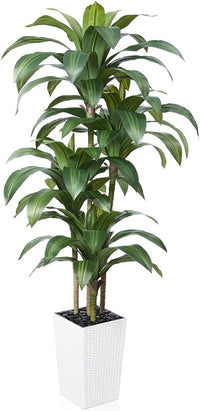 6FT Artificial Dracaena Tree - UV Resistant Faux Tropical Plant, Potted Fake Tree with Taper Planter & Pebbles - Indoor Outdoor Greenery for Home, Porch, Living Room, Bedroom Decor, VN127