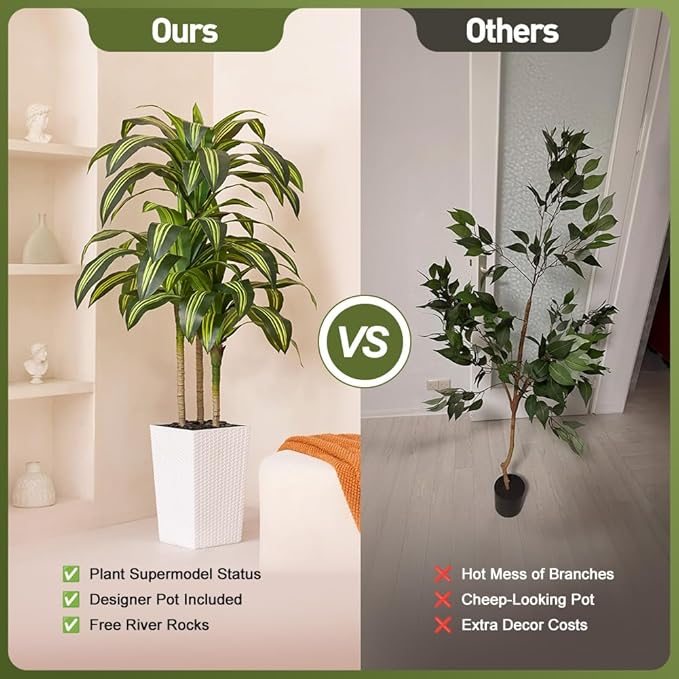 Artificial Dracaena Tree 5FT - UV Resistant Faux Tree with Large Taper Planter & Pebbles - Tall Fake Plants Indoor & Outdoor, Potted Floor Plant for Home Living Room Porch Decor, VN127 Sale